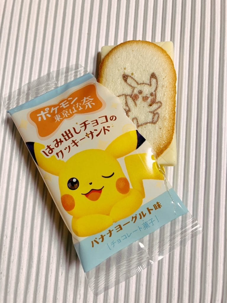 ピカチュウは,バナナヨーグルト味のチョコレートがサンドされて居ます.